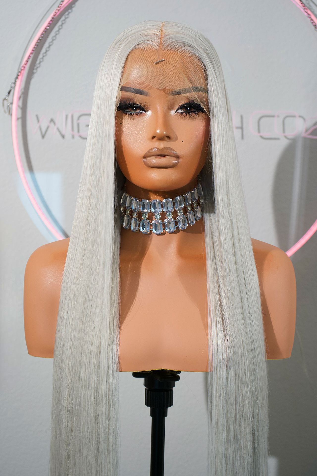 FLASH SALE DEAL LIMITED TIME⚡️ICY GRAY 13x6 40-Inch Lace Frontal Premium Fiber Blend Wig - Heat-Resistant, Luxury Long Wig for Glamorous Styling